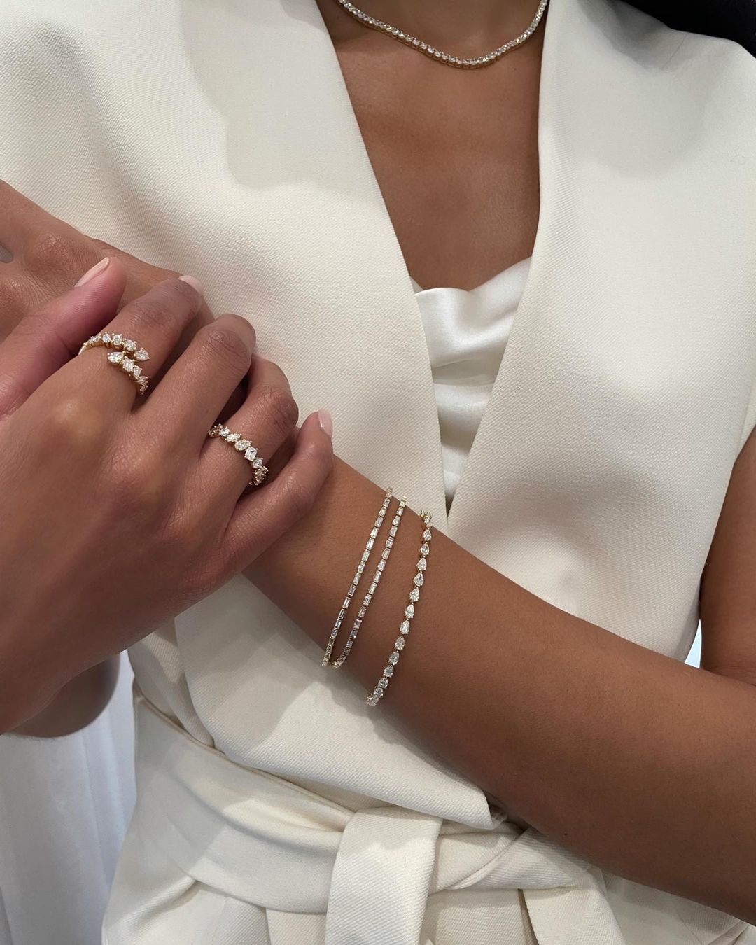 Riviera necklaces are no longer meant for formal galas. We are seeing celebrities wear them over white t-shirt and jeans or a fun spring outfit.