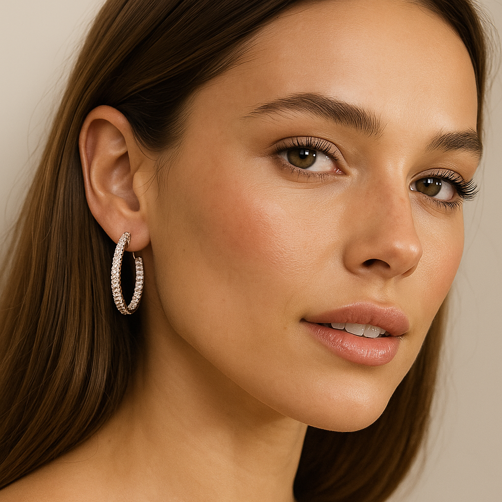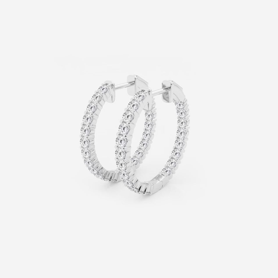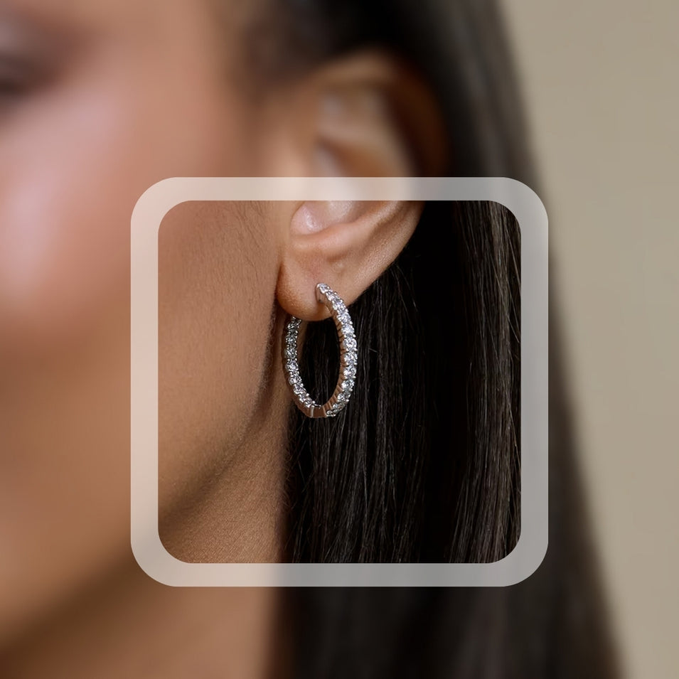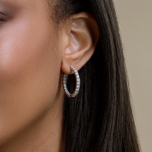 Shop nowAn ode to timeless elegance, these inside-out hoop earrings captivate with the of 2 ctw round Moissanite diamonds, each carefully cradled in a prong setting.