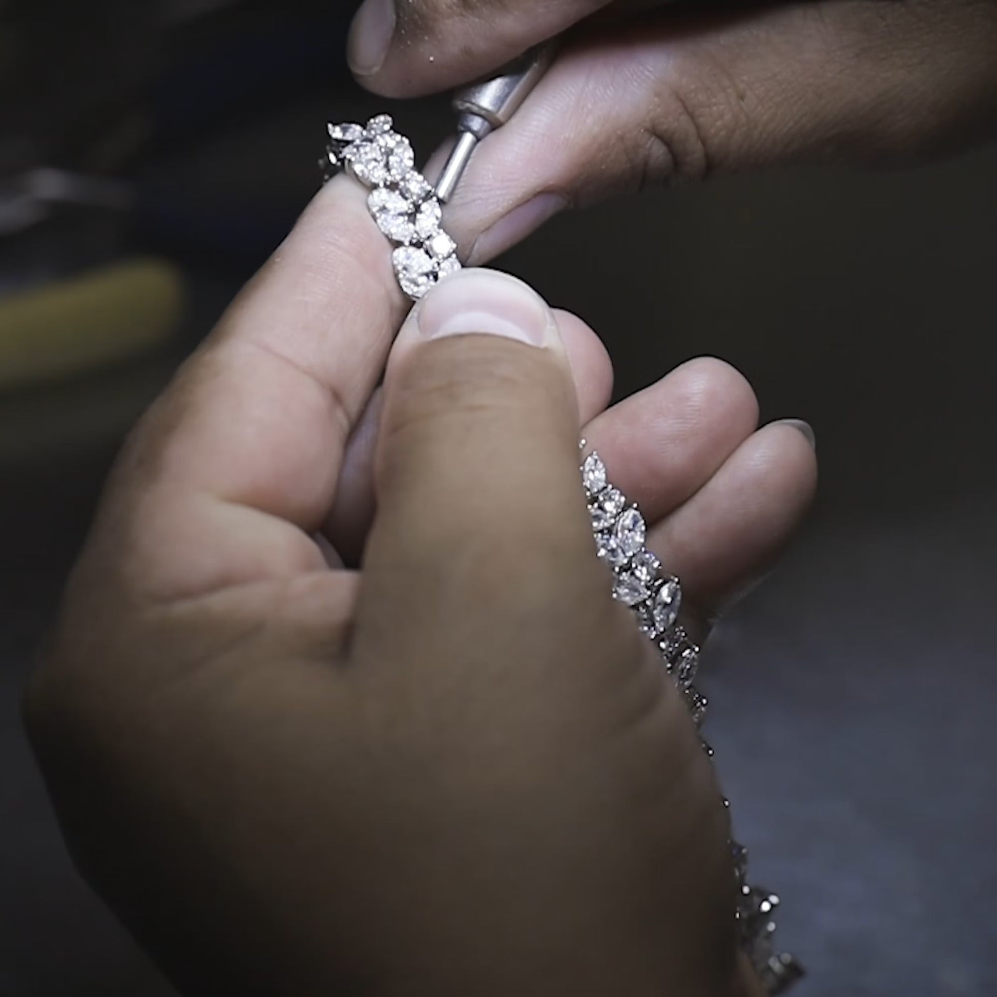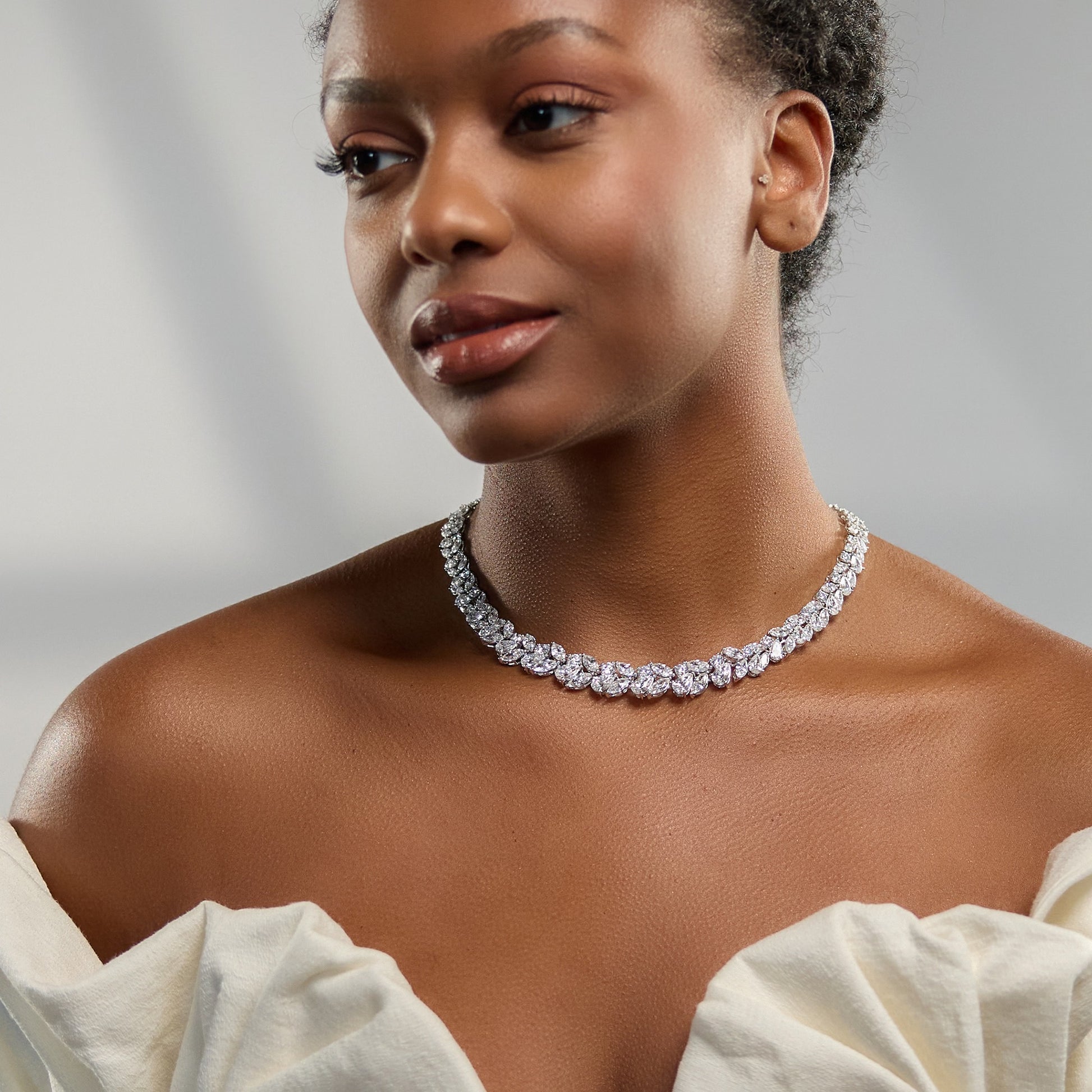 The mineral-rich waters of the thermal baths of Budapest are renowned for their healing properties, soothing tired muscles, and easing stress. What makes this therapeutic soak such an amazing experience is the unique architecture of the baths themselves. With stunning mosaics, intricate sculptures, and ornate columns adorning the walls and ceilings, the baths relax the body while embracing the artistic soul. Submerged in these warm waters, surrounded by such beautiful art and design is what inspired the creation of Budapest Necklace. With a mix of various diamond shapes, placed as carefully and intentionally as each tile in the bathhouse mosaics, this necklace is a nod to the healing waters and awe-inspiring designs one can only experience when visiting the thermal baths of Budapest.