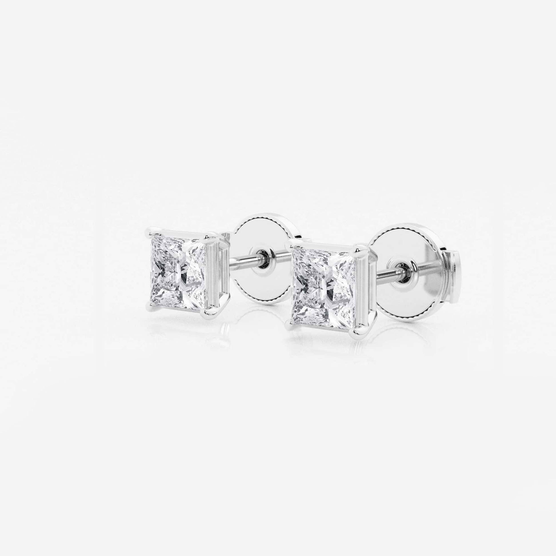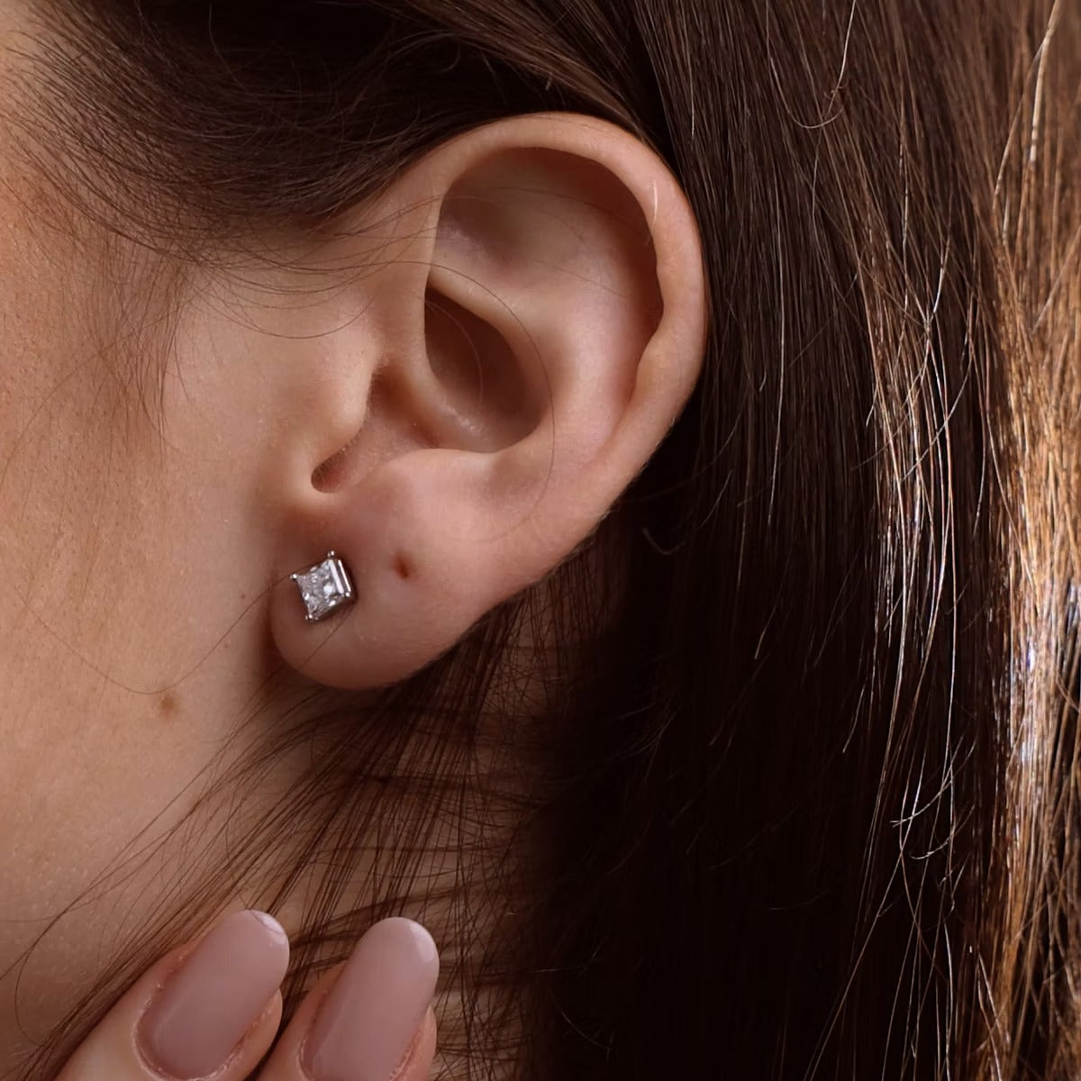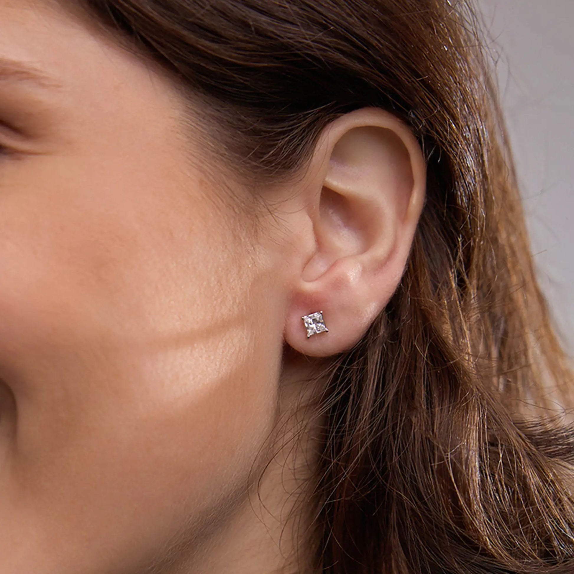 Nothing makes one feel like a princess more than these lab grown princess cut diamond stud earrings. These studs are set in four prongs in a delicate basket setting. Pick the size that is best suited to your ears in the gold color of your choice.